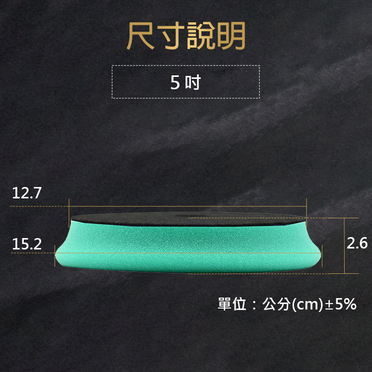 尺寸:5吋(魔鬼氈直徑12.7cm±5%,海綿面直徑15.2cm±5%)