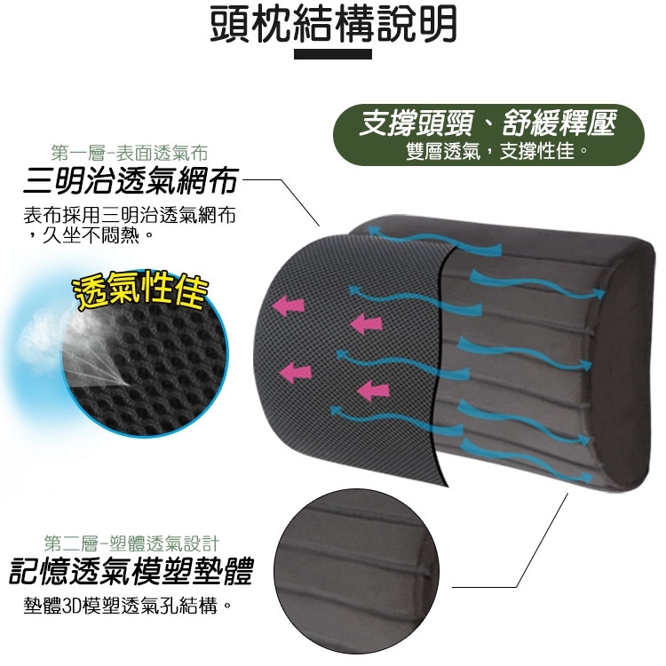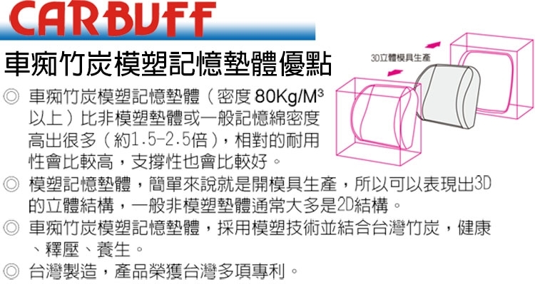 商品名稱 : CARBUFF 竹炭記憶透氣頭枕/頸枕 MH-10184
