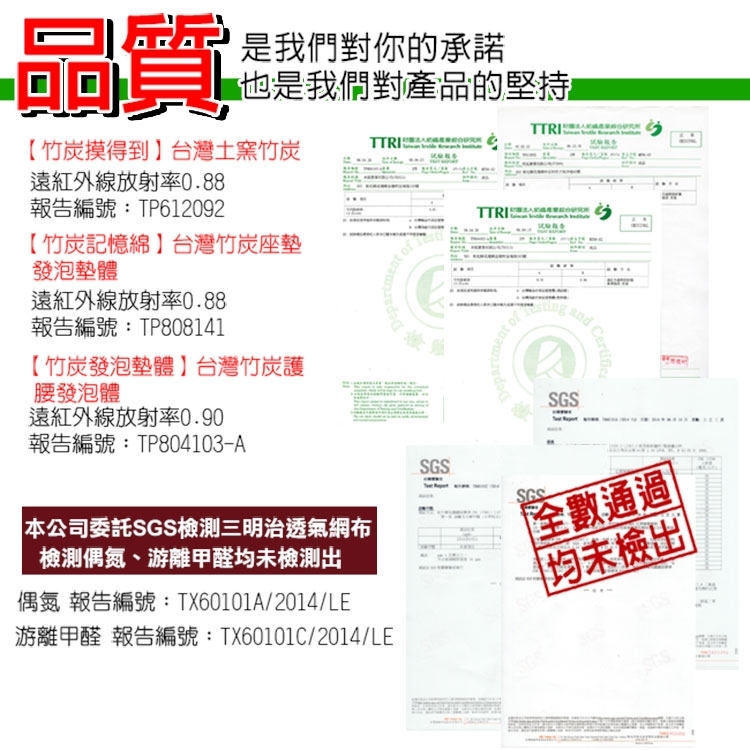 材質 : 表布/聚酯纖維100% (三明治透氣網布)、內容物/竹炭、聚氨酯