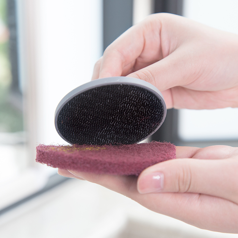➤ 3吋自黏盤須搭配4吋秏材使用(科技海綿、砂紙除外),讓兩者之間保留緩衝距離,避免自黏盤刮傷被清潔物。
