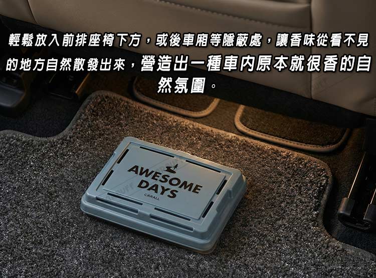 ◆盒型凝膠芳香劑,專門設計用於放置在座椅下或其他隱蔽空間