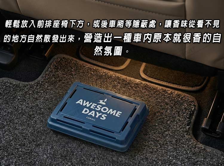 ◆盒型凝膠芳香劑,專門設計用於放置在座椅下或其他隱蔽空間