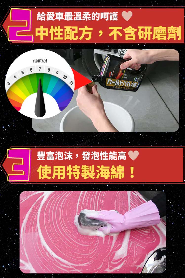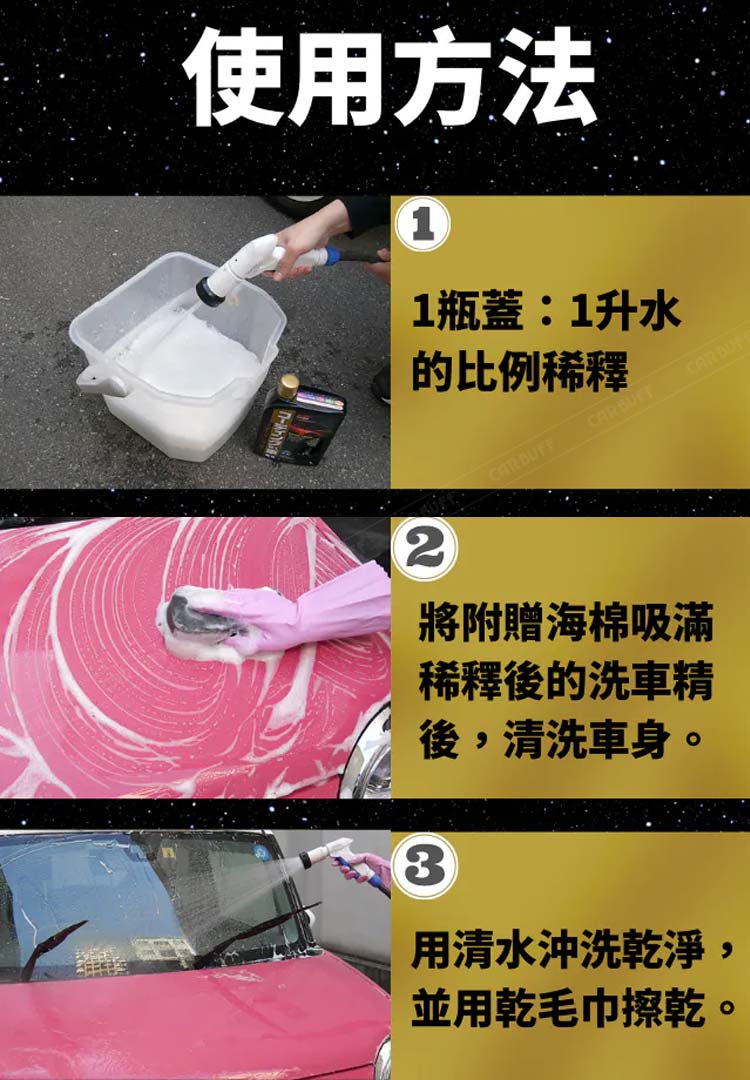 ◎不含研磨劑:不會損傷漆面或保護膜之研磨成分,最適合用於經過汽車美容後的車身使用