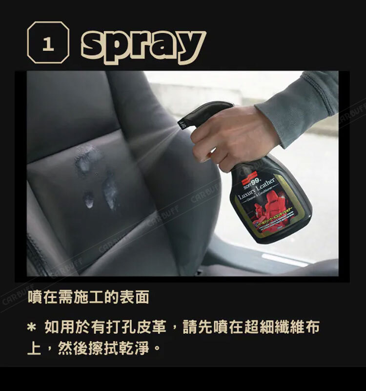2.請勿在陽光直射下或皮革處於高溫狀態下使用,有可能會造成表面不均的情形。