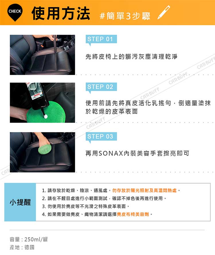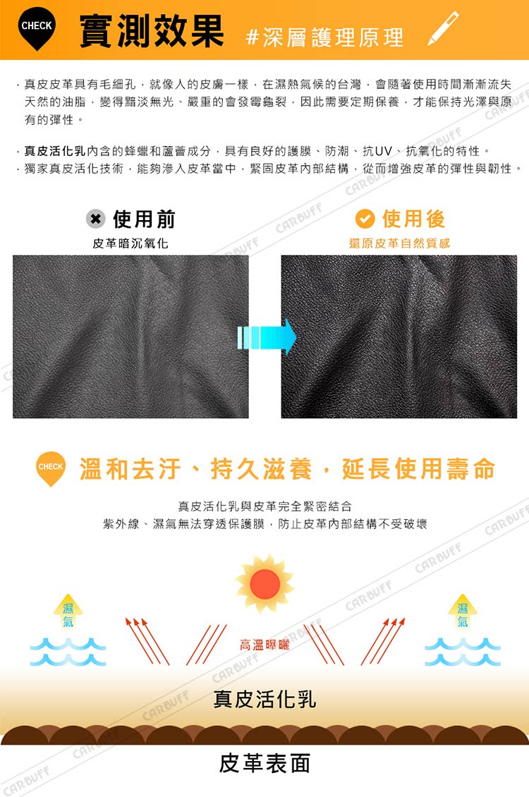 ◆保護皮革免於紫外線的傷害,且散發令人愉悅的皮革氣味