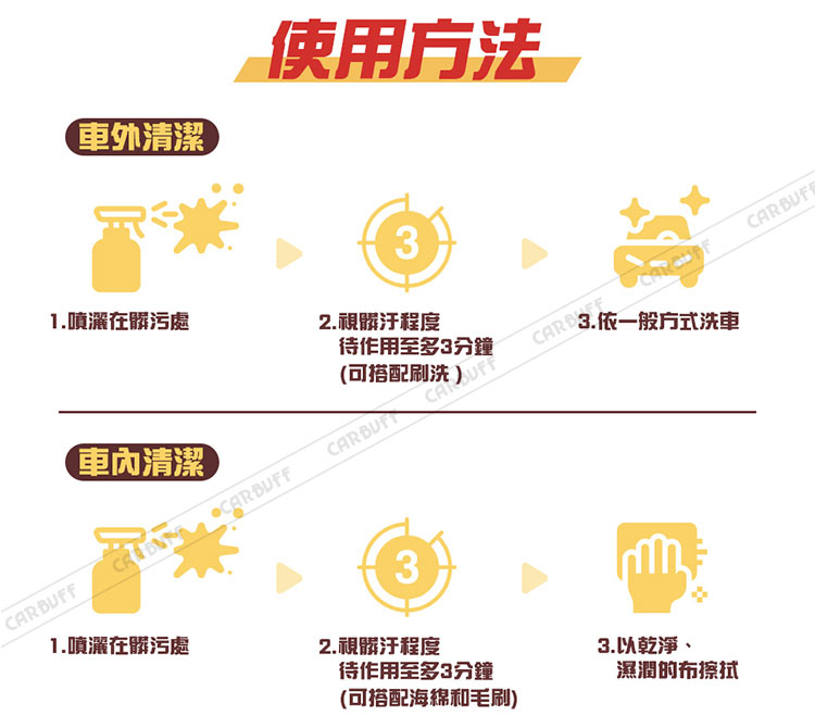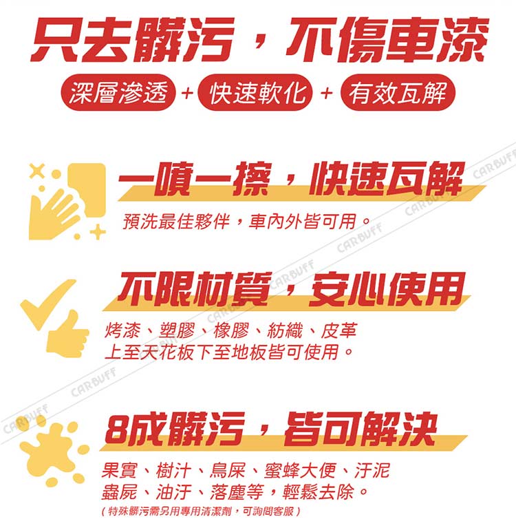 ◆洗車前,用於預先去除嚴重髒汙的表面