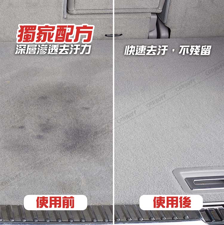 車內清潔:可去除天花板、車內飾條、布座椅、紡織品、地毯等表面上的頑垢。