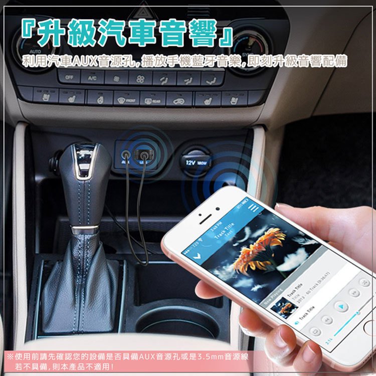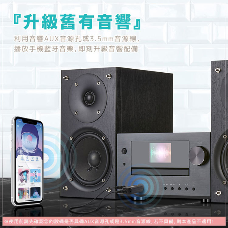 包裝內含:藍牙AUX音源接收器 x1、3.5mm音源線 x1、說明書 x1