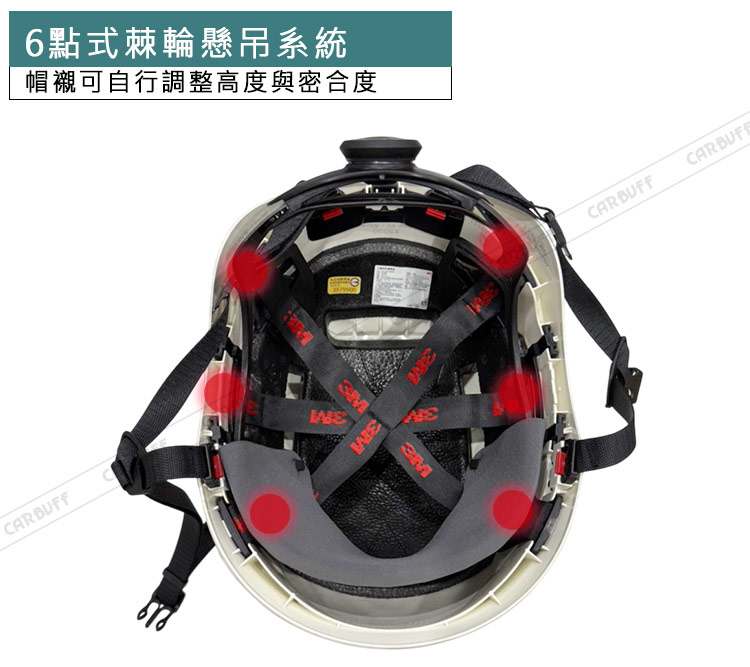◎6點式棘輪懸吊系統帽襯可自行調整高度與密合度