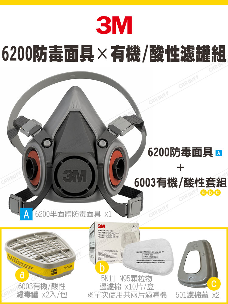 品名:3M 6200防毒面具+6003有機/酸性濾罐組
