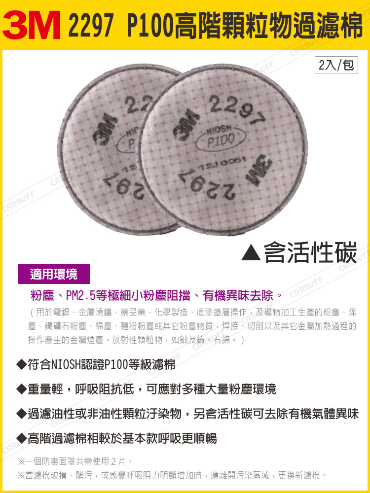【3M 2297高階顆粒物過濾棉 x2片/包 (2包/共4片)】材質:聚丙烯,產地:美國