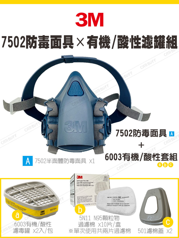品名:3M 7502防毒面具+6003有機/酸性濾罐組