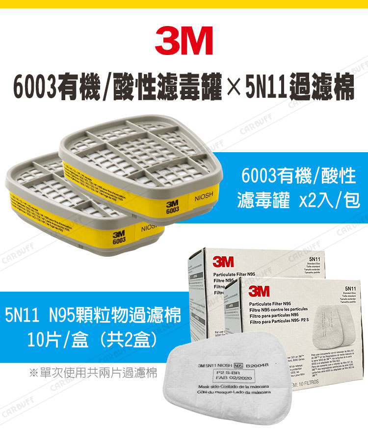 【3M 6003有機/酸性用濾毒罐 x2入/包】主要成份或材料:活性碳,淨重:約187克/包,產地:韓國