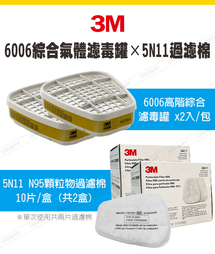 【3M 6006高階濾毒罐 x2入/包】主要成份或材料:高密度活性碳,淨重:約230克,產地:韓國