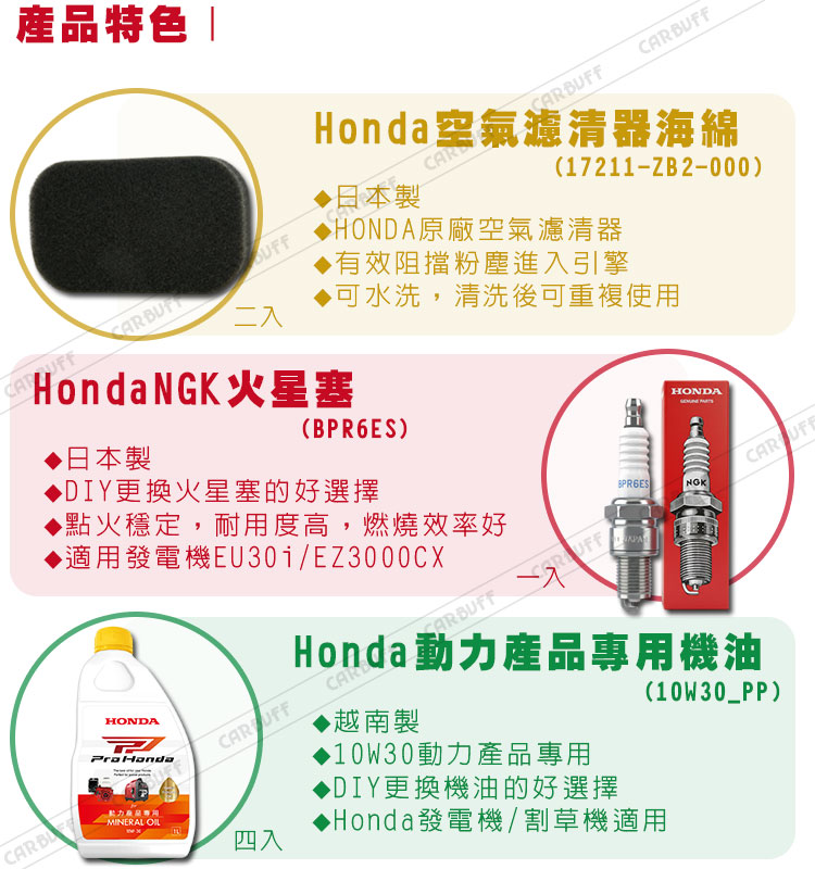 品名:Honda本田 發電機EZ3000CX適用 原廠DIY保養套組